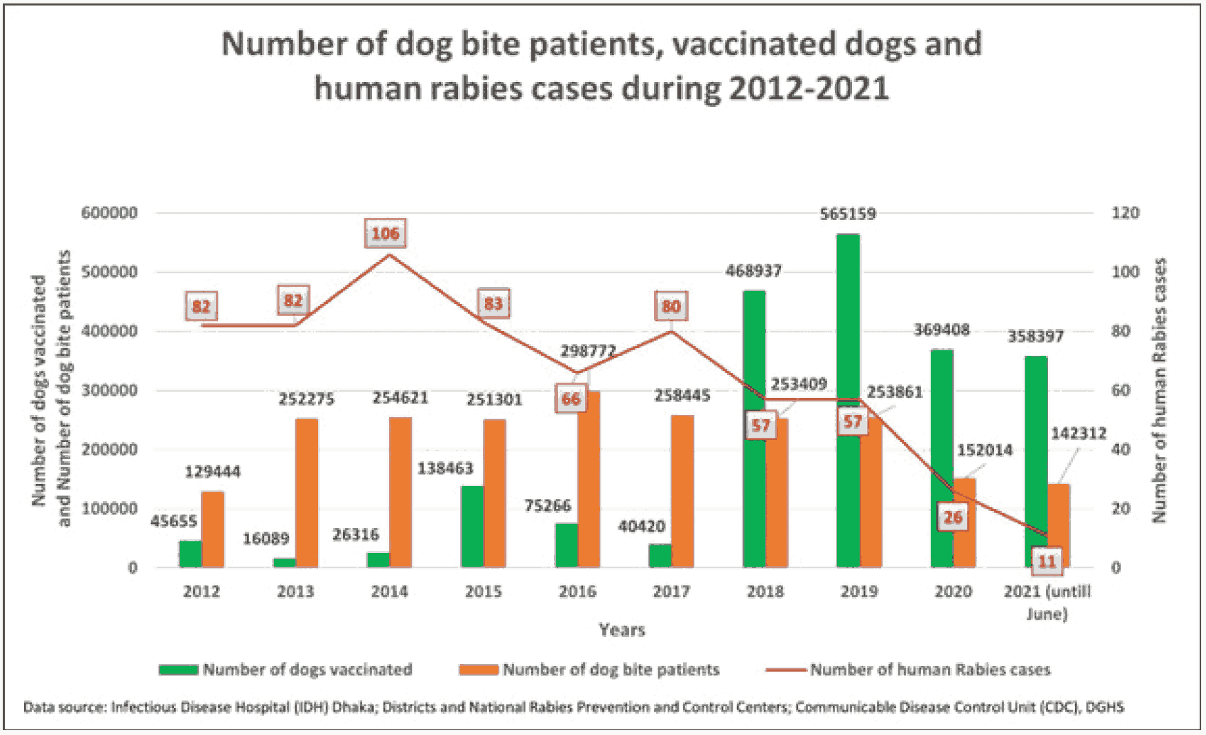 Fig. 13: Impact of national rabies elimination activities on human rabies incidence in Bangladesh 2012–2021
