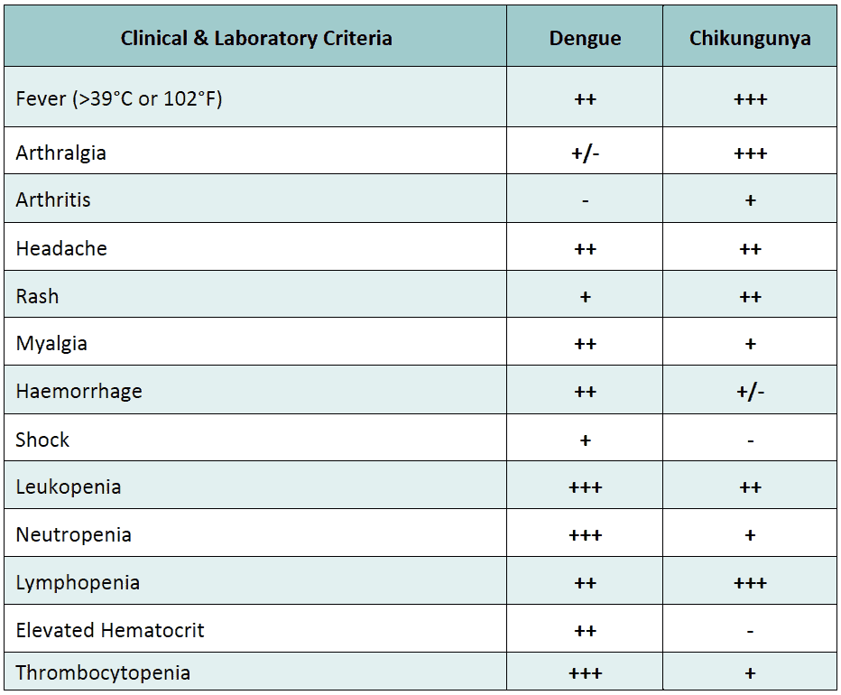 Table 2 : Difference between Dengue & Chikungunya