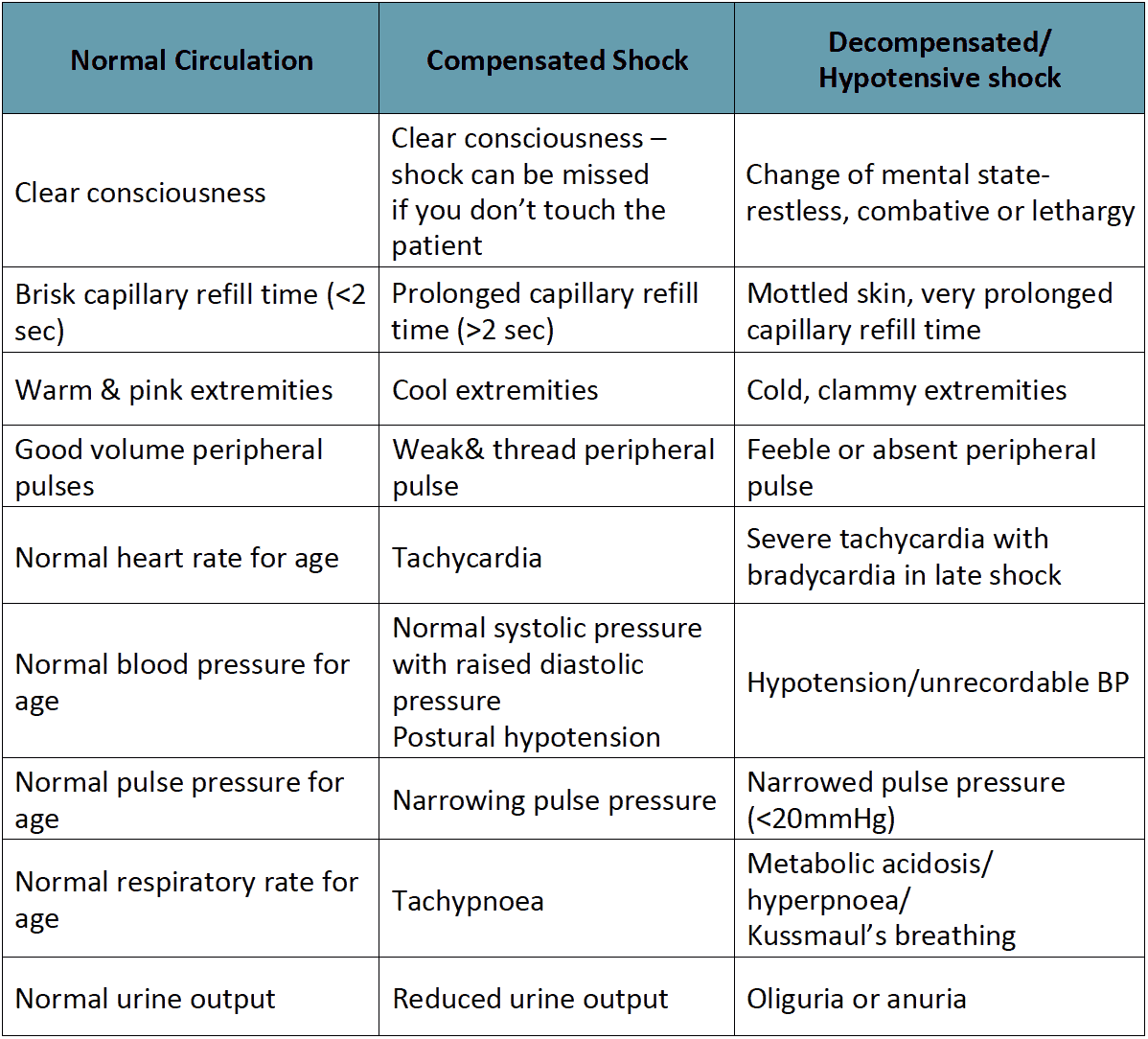 Table 6 - Clinical symptoms and signs in compensated and decompensated shock