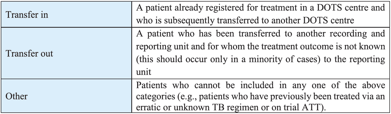 The TB Cases are categorised in to Pulmonary and Extra Pulmonary TB based on the anatomical site of the disease.