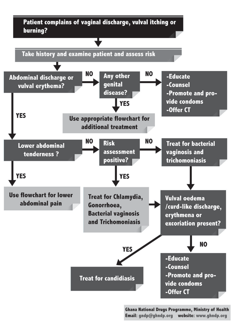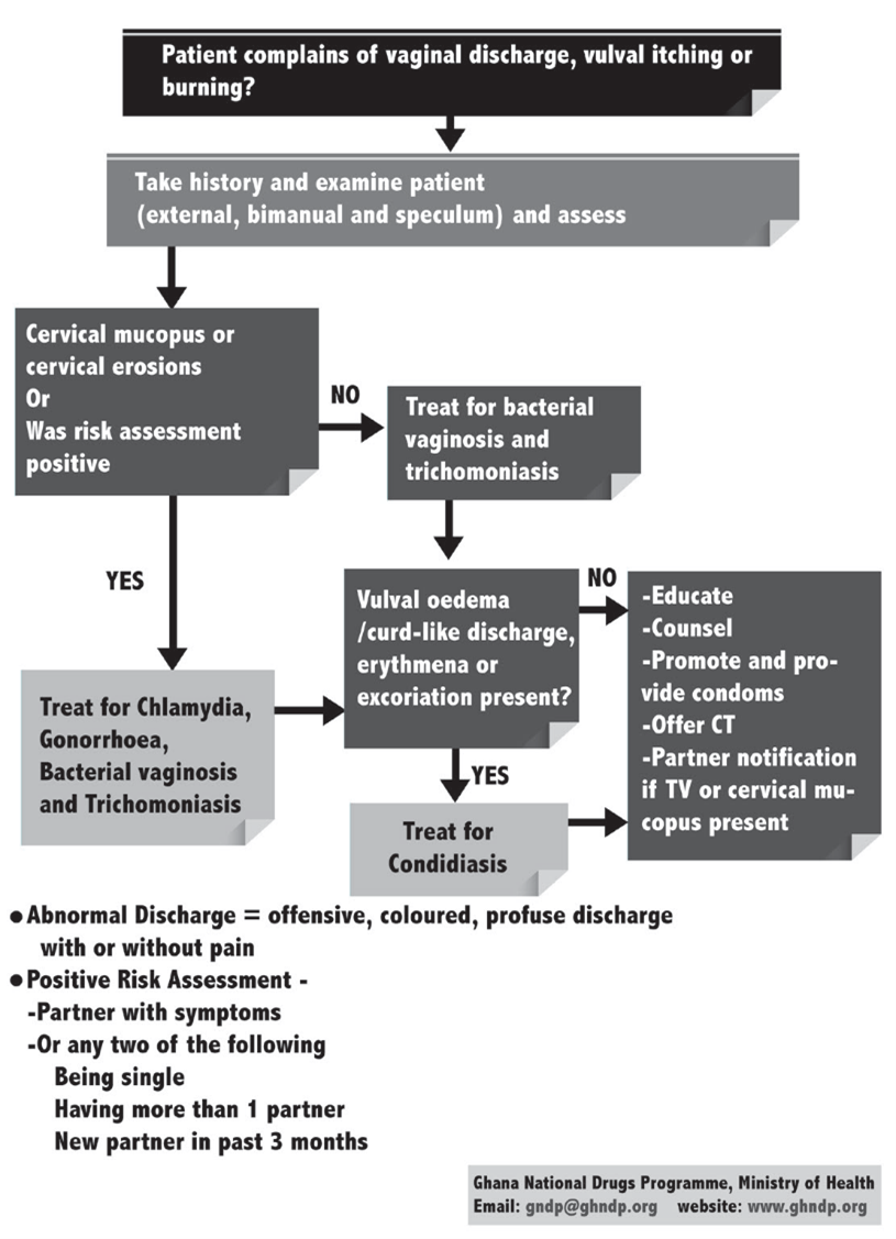 Careful history taking should reveal whether a vaginal discharge is abnormal and if it is associated with use of chemical substances e.g. topical self-medication, repeated douching with abrasive substances or indeed due to STI. Changes in the characteristics of a woman’s vaginal discharge either in colour, odour, amount and presence of additional symptoms and signs such as soreness and itchiness indicate a need for medical attention.