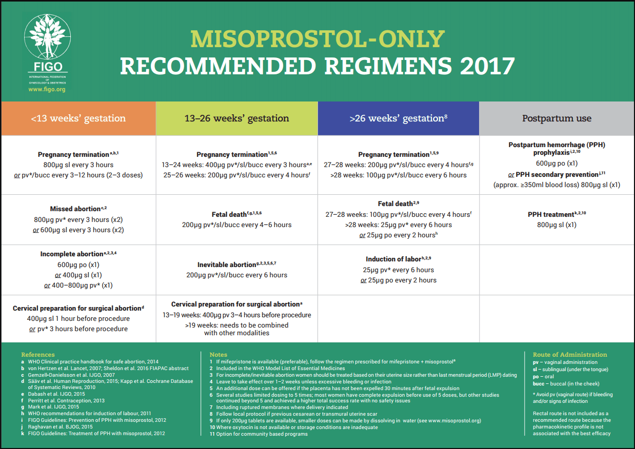 - REFER TO FIGO TABLE FOR A DOSES OF MISOPROSTOL